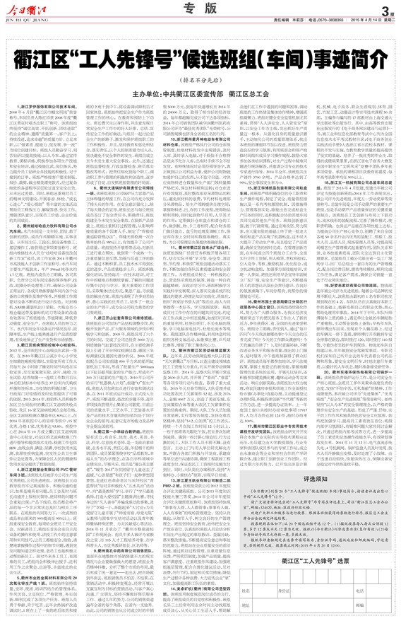 衢江区“工人先锋号”候选班组(车间)事迹简介