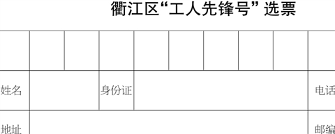 请广大读者将评选出的“工人先锋号”序号写在评选表上,寄往“衢江区总工会办公室”,邮编:324022,地址:区政府行政大楼。