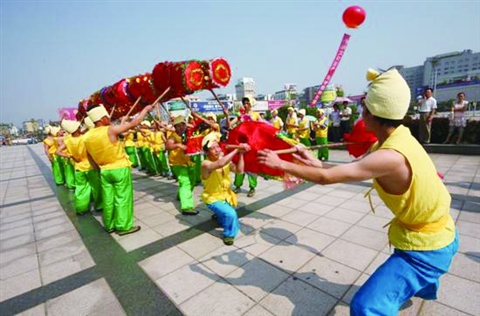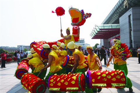 “节节龙”也叫“九龙节”,出自上方镇玳堰村,始于清朝同治年间,至今已有一百四十多年的历史。“九”寓意九九归一,“节”与“吉”谐音,取其清洁,吉利之意。节节龙最大的特点是每节之间互不相连,便于山区表演,特别是在农户家中堂前表演,更是灵巧方便。客厅大的九节全上,客厅小的则可酌情删减节数,非常灵活。节节龙的舞法很多,主要有盘颈倒挂、龙开四门、龙戏五方、行龙、躺龙、戏珠、盘龙等,有二、三十套路,可连续舞耍一至二个小时,而动作套路不重复,被人称为“功夫龙”。