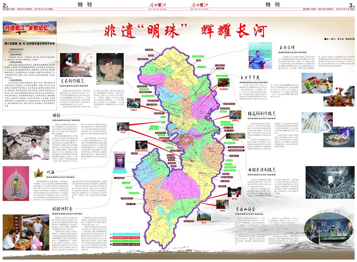 沧州古乐舞、灰煎糕制作技艺、破石“关枣”、衢江根雕、手工造纸技艺、谷雨祭牛、八月中秋老佛节、山歌《十里亭》、金牛的传说、泥烧狮子制作技艺、白云庵庙会、胜桥杨氏祭典、偿母药、板固青龙、蓑衣制作技艺、西山寺庙会、天脊龙门的传说、山歌《长工哥》、抗金名将徐徽言的传说、南宋状元毛自知的传说、牛角席制作技艺、双桥薯脯制作技艺、二胡制作技艺、铸铁锅制作技艺、丧葬习俗、花鼓戏、八月廿五老爹会、上方道情、不老神鸡制作技艺、米酒制作技艺、小笼包制作技艺、畲族乌食制作技艺、余记烤饼制作技艺、捏泥人技艺、畲族祭祖、行走性锣鼓工尺谱