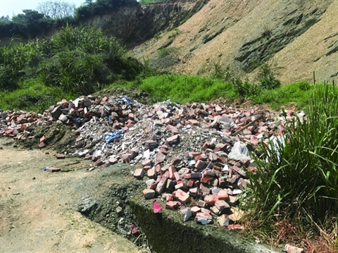 3月30日,305省道187k+400 杜泽镇境内,建筑垃圾乱堆放。