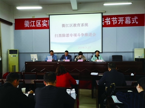 区教育局第一时间组织召开教育系统扫黑除恶推进会,动员全区学校积极参加,主动作为。会后,全区各学校迅速落实会议精神,利用多种形式开展扫黑除恶宣传活动,对师生进行“扫黑恶、提‘两率’、保平安”主题宣传教育,通过橱窗、展板、标语、通告等,广泛宣传开展扫黑除恶专项斗争的重要意义;充分发挥室外LED滚动屏作用,促进宣传;印发《致学生家长的一封信》,通过“小手拉大手”,让学生带给家长,实现家喻户晓、人人皆知。全区各学校在醒目位置悬挂横幅标语150余条;LED屏滚动播放标语90余条;设立宣传专栏60余个,印制发放致家长信等宣传资料50000余份。同时,强化对青少年学生的教育管理,切实防范青少年学生被黑恶势力教唆、利用。各学校将扫黑除恶专项斗争宣传教育与法治教育有机结合,聘请法制副校长,深入开展普法进校园、警