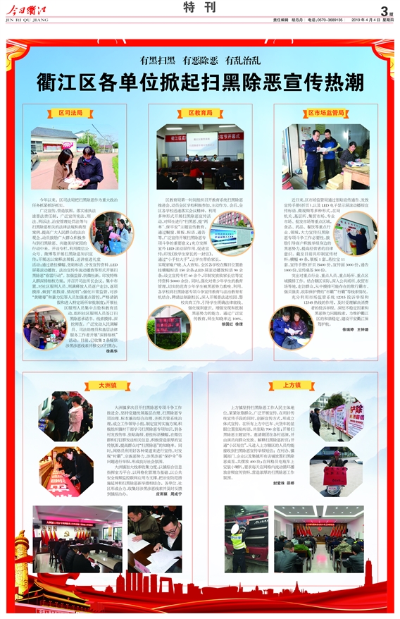 大洲镇加大线索收集力度,以镇综合信息指挥室为平台、以网格化管理为基础、以公共安全视频监控联网应用为支撑,把治安防范措施延伸和扫黑除恶新举措相结合,各单位、社区形成合力,收集好涉黑涉恶线索并及时反馈到镇综治办。 应雨骐 周成宁
