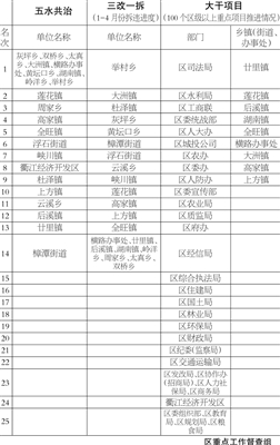 根据区委、区政府统一部署和《关于开展“五水共治”、“三改一拆”和“大干项目”工作督查的通知》(区委办通〔2014〕56号)要求,4月底至5月初,区“五水共治”、“三改一拆”和“大干项目”三个督查组,分别对我区“五水共治”、“三改一拆”和“大干项目”4月份进展情况进行了督查。现将排名情况通报如下: