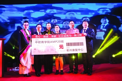 2014年3月29日,对于徐建英来说,同样难以忘怀,因为宁波市东钱湖畔为孩子们奏起爱的华章。上海福美基金为中欧AMP20届毕业典礼公益环节对接慈善项目,在衢江区委常委朱剑涛几次三番的努力下,成功对接衢江区智障儿童康复特训中心。整个活动以拍卖的形式汇聚爱心,共募得善款31万元。区智障儿童康复特训中心负责人徐建英说:“这些钱将用于校舍维护和设备添置,让学校脑瘫、智障的孩子们有更好的环境接受康复训练,让这些‘花儿’绽放。”