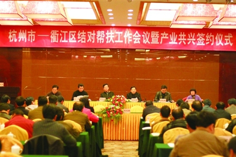 如何确保贫困人口稳定有效脱贫,增强贫困人口自我发展能力?产业扶贫是最根本、最有效的办法和途径。在遵循优势互补、资源共享、互利双赢的基础上,实施“造血”帮扶机制,积极与杭州市企业对接,2008年引进结对帮扶单位———娃哈哈集团公司,在衢江经济开发区投资2.2亿元建成占地116亩的启力饮料公司,年产值3.4亿元,税收3000多万元,还带动纸箱、物流等延伸产业,解决1000多名低收入农户就业。面对杭州产业转移有利时机,立足衢江优势资源,积极寻找切入点,促成杭州高新农业科技公司投资2000万元在衢江区创建杭莲设施农业科技示范园;在乌溪江库区投资140多万元建成储量200吨保鲜库、交易大棚360平方米的农产品交易市场,带动库区群众增收致富……2000年以来,全区共争取结对单位帮扶资金近7000万元,实施产业基地、康庄路、教学楼、自来水等帮扶项目368个,建成特色产业基地2.8万亩,修建基地和自然村连接道路138公里,走访慰问困难农户1500多户。