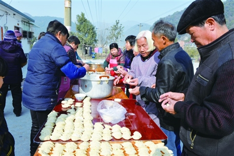 5斤半肉、10斤面、15斤糯米……农历廿四一大早,上方镇金牛村居家养老服务照料中心门前,二十多名老爷爷老奶奶正忙着将这些馅料“裹成”热乎乎的饺子和粽子。“马上要过年啦,老人家们聚在一起热闹热闹!”村支部书记谢春花乐呵呵说道。