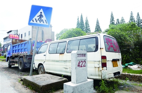 7月4日,320国道422公里处,两辆“僵尸车”长期占用公共空间,影响道路美观。 区新/摄