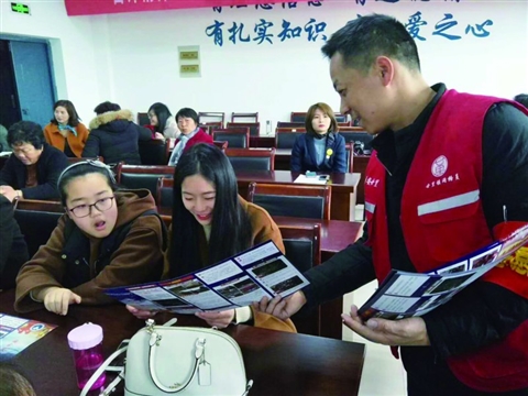 图1为:3月5日,廿里镇开展走进校园让“雷锋精神”成为薪火相传正能量活动,内容包括2017年廿里镇优秀志愿者颁奖、重温志愿誓词、各志愿服务队代表认领2018年志愿服务清单等,并公布了2018年廿里镇志愿服务计划。 蓝莹叶翔/摄