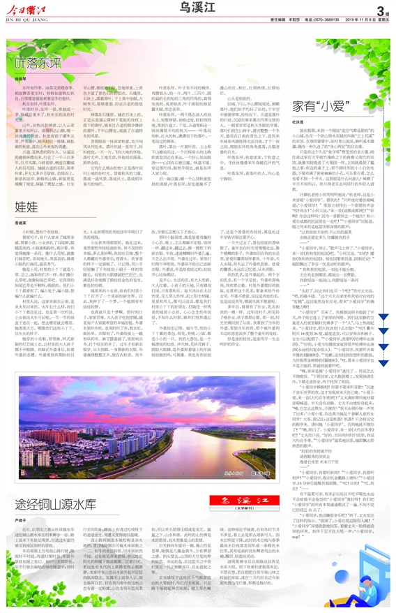 “小爱同学”买来了,我根据说明书捣鼓了半天,终于给它连上了家里的网络。我们这安静的空巢老人的家里顿时仿佛多了一个“人”,马上热闹起来。“小爱同学,明天我该穿什么衣服?”“哎!衢州明天18度到26度,温度适宜,可以穿单衣和裤子。女生可以配裙子。”“小爱同学,我要听《哈佛毕业演讲》。”“好的,小爱为你播放家庭背景声哈佛毕业演讲《永远别向复杂低头》。”“小爱同学,我要听齐秦齐豫的《藤缠树》。”“抱歉,没有找到你想听的歌曲,为你推荐金婷婷的《藤缠树》。”哎,看来小爱同学也不是万能的,那就将就着听吧。